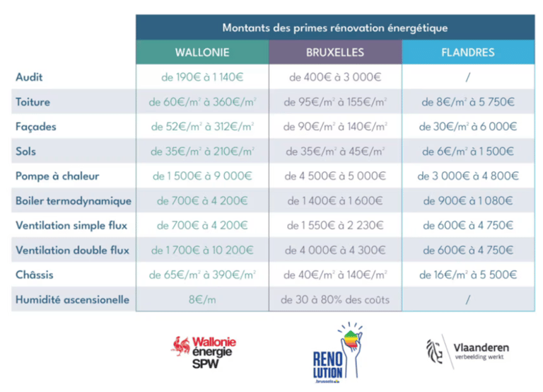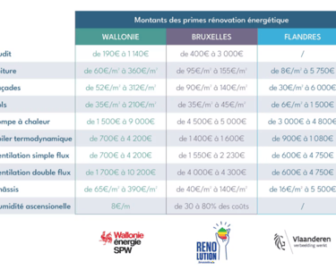 finale - Cumul max. 90% des coûts - Vérifier les primes communales disponibles selon la commune